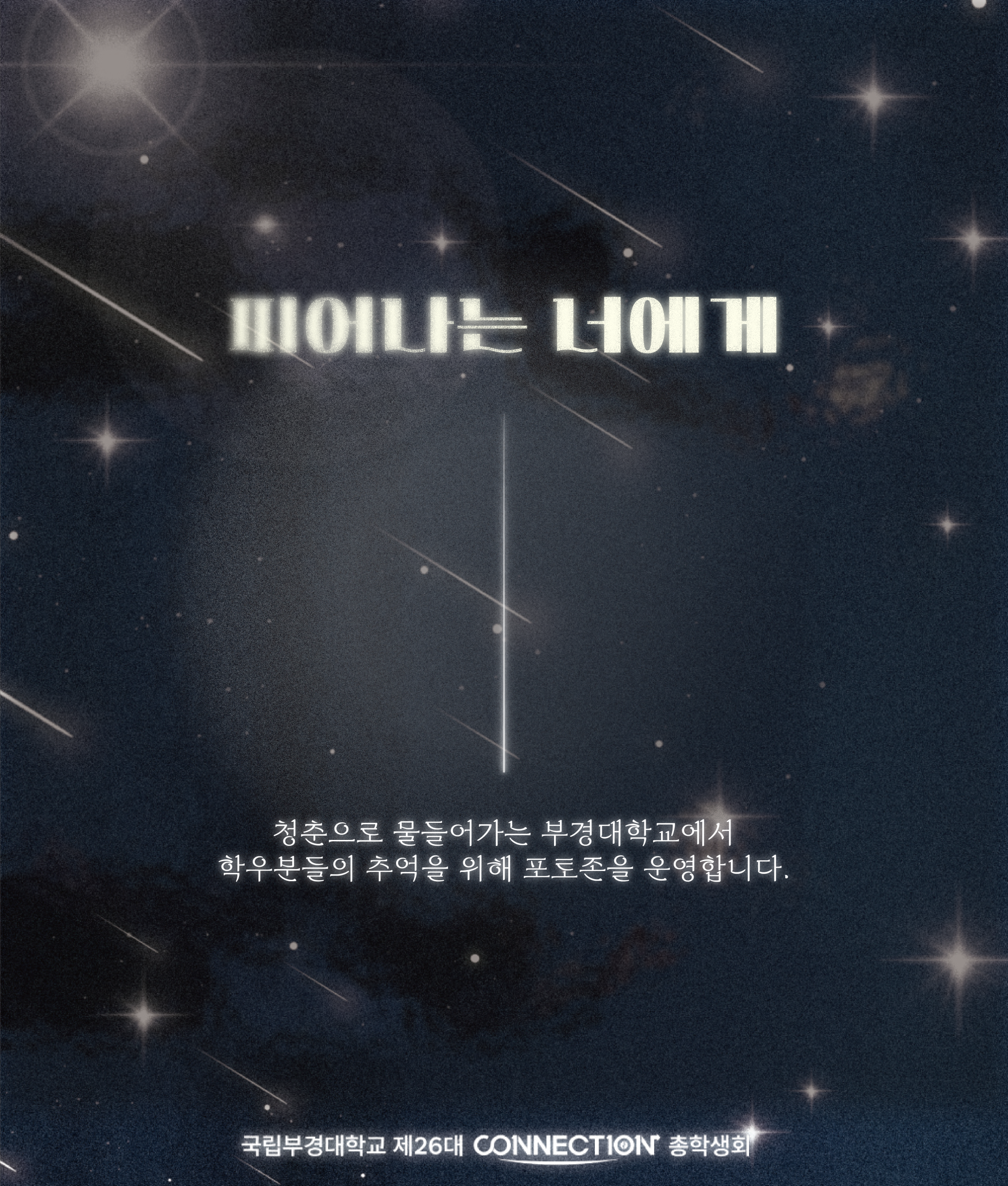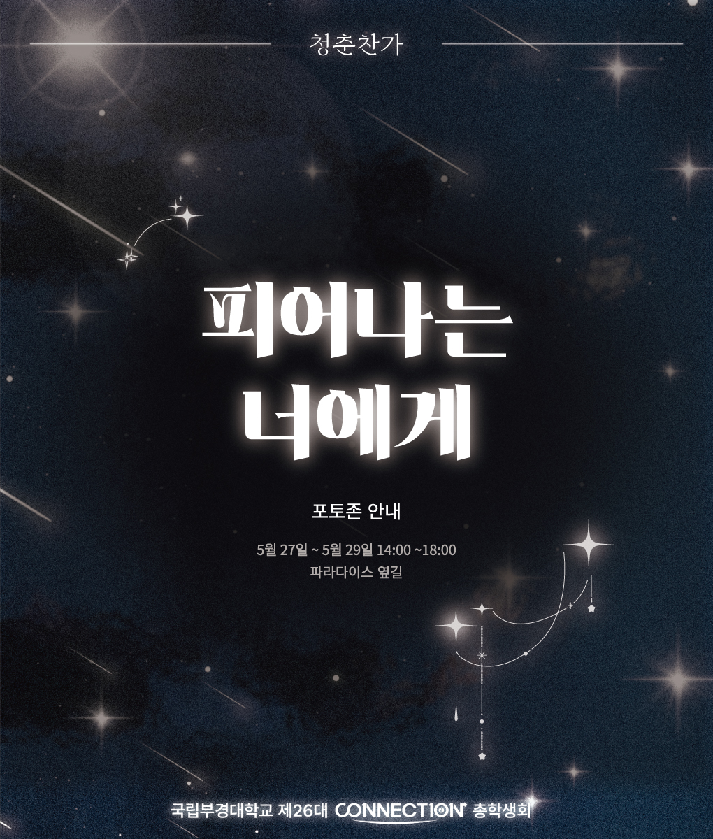 청춘으로 물들어가는 국립부경대학교에서 학우분들의 청춘 기록을 위해 포토존을 운영합니다.